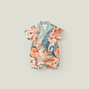 龙喜年婴儿百天宝宝衣服中式 国风汉服百天百日宴周岁礼服连体夏季