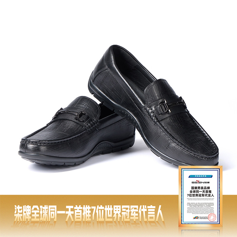 真皮透气柔软百搭时尚 款 单鞋 男士 柒牌商务休闲男鞋 套脚懒人鞋 四季