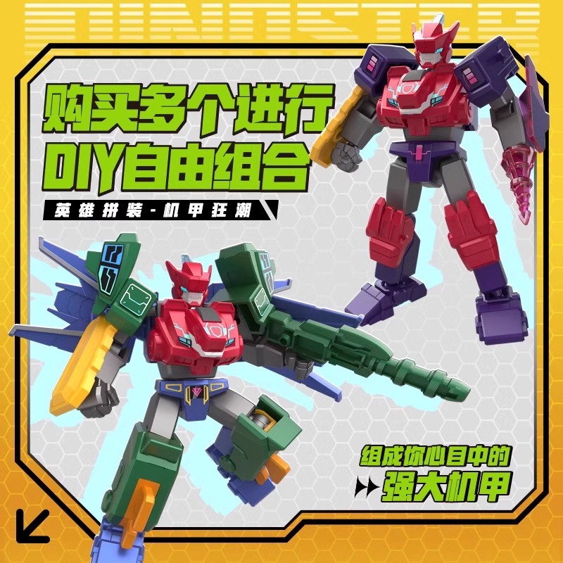 量子战队积木人恐龙守护英雄拼装 儿童玩具 机甲人偶光辉战神盲盒