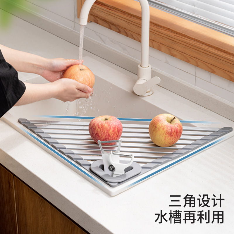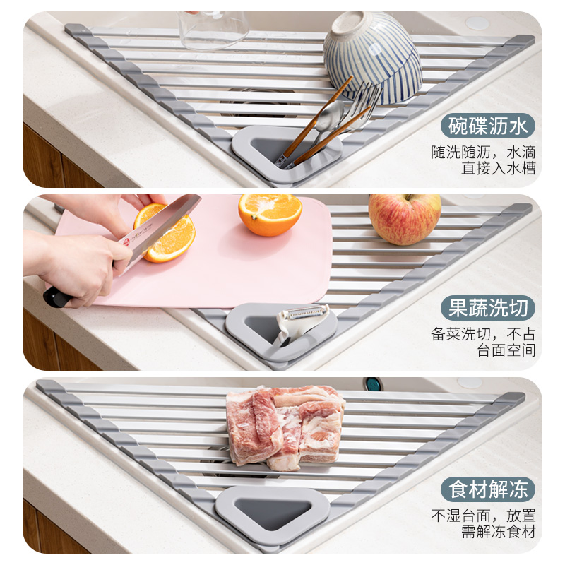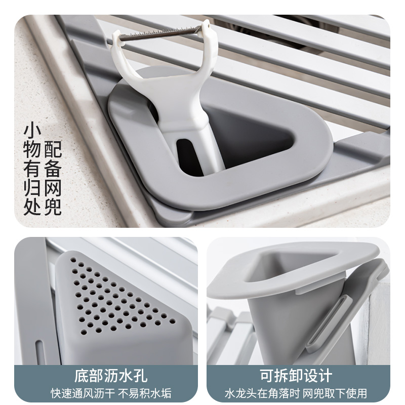家之物语轻便式 折叠三角形水槽置物架沥水架碗筷架海绵滤水架卷帘