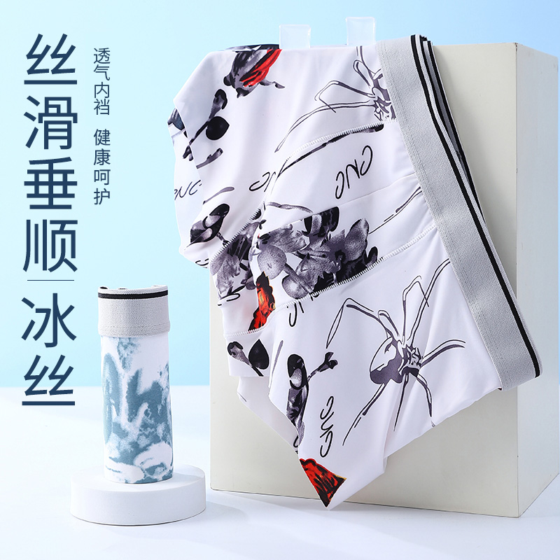 内裤 新款 无痕平角短裤 头透气青少年四角夏季 薄 衩抗菌底裤 冰丝男士