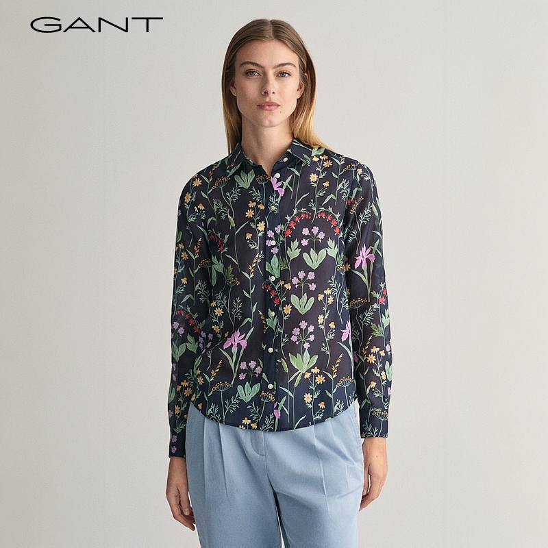 甘特春季 衬衫 新款 复古衬衣直筒印花长袖 上衣 女士气质法式 GANT