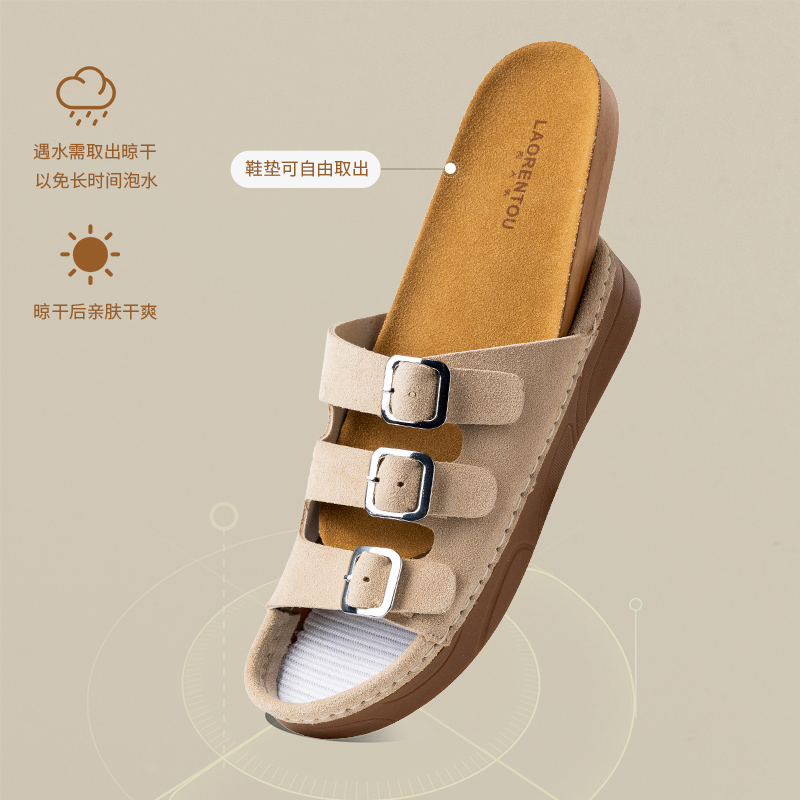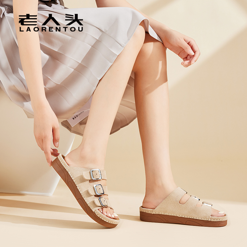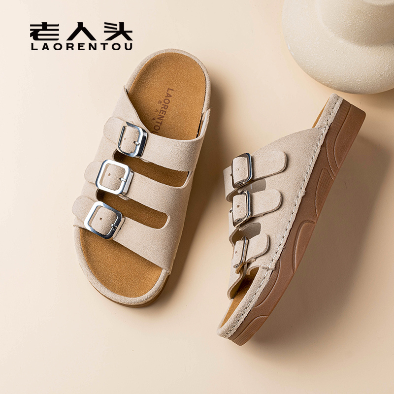 厚底外穿一字拖鞋 老人头勃肯拖鞋 休闲沙滩凉鞋 夏季 凉拖 女2025新款