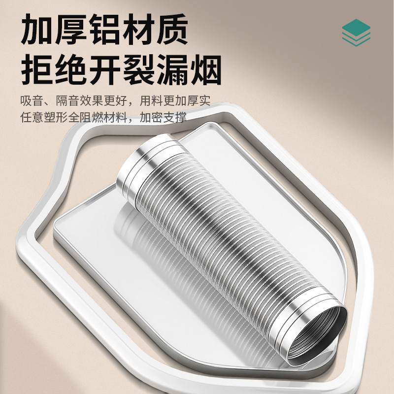 德国抽油烟机排烟管纯铝排烟风管不锈钢接头吸油烟机排气风扇软管