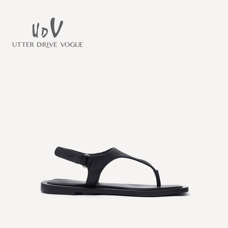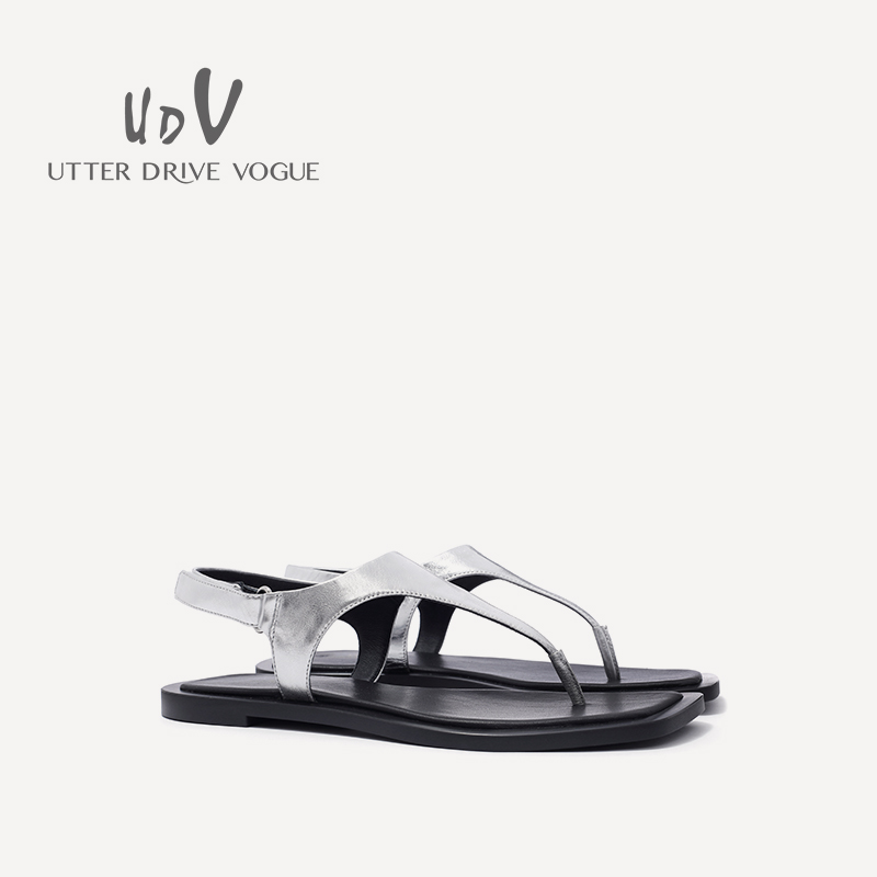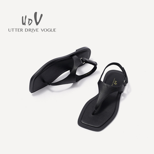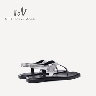 女鞋 圆头平底时装 极简风冷感 夹脚凉鞋 UDV2024春夏真皮羊皮时尚