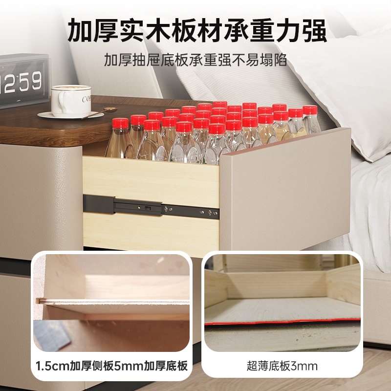 实木床头柜家用卧室2025新款 轻奢高级感现代简约小型床边收纳柜子