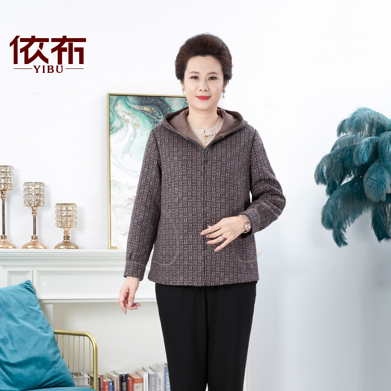 上衣 大码 依佈2024秋冬新款 格纹外套中老年女士连帽大衣年轻妈妈装