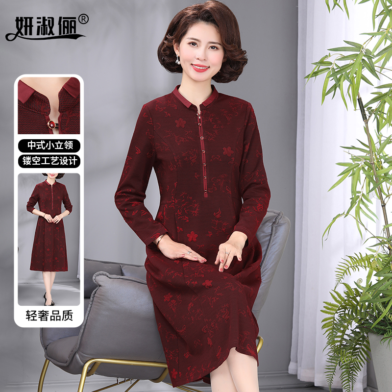 平时可穿 春喜婆婆婚宴装 中老年妈妈连衣裙立领提花新中式 2025新款