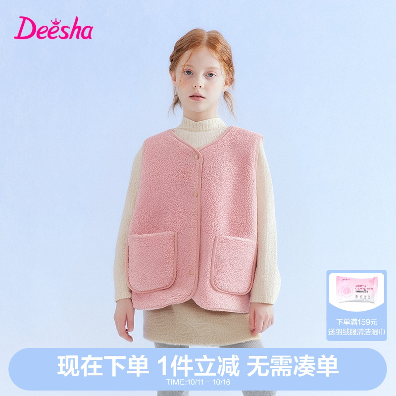 马甲开衫 绿色甜美双排扣针织毛衣连衣裙女秋冬新款 氛围感穿搭无袖