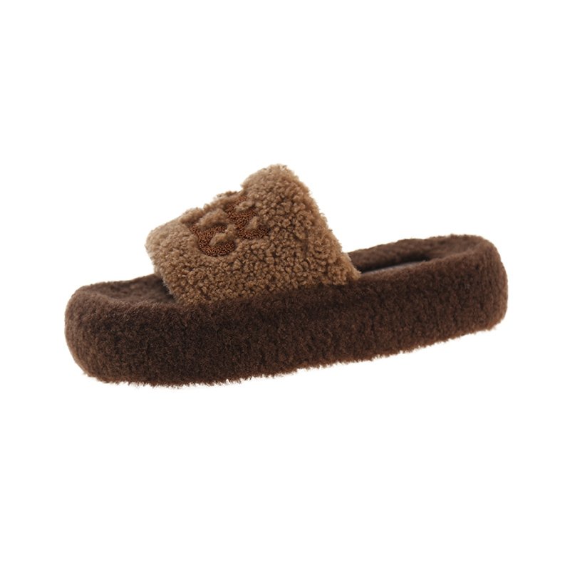 厚底棉拖鞋 2025秋冬季 女外穿一字拖潮鞋 百搭毛毛拖鞋 网红豹纹时尚