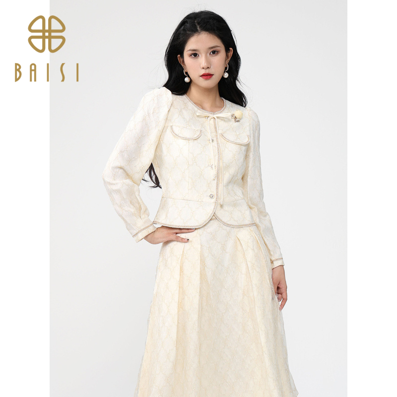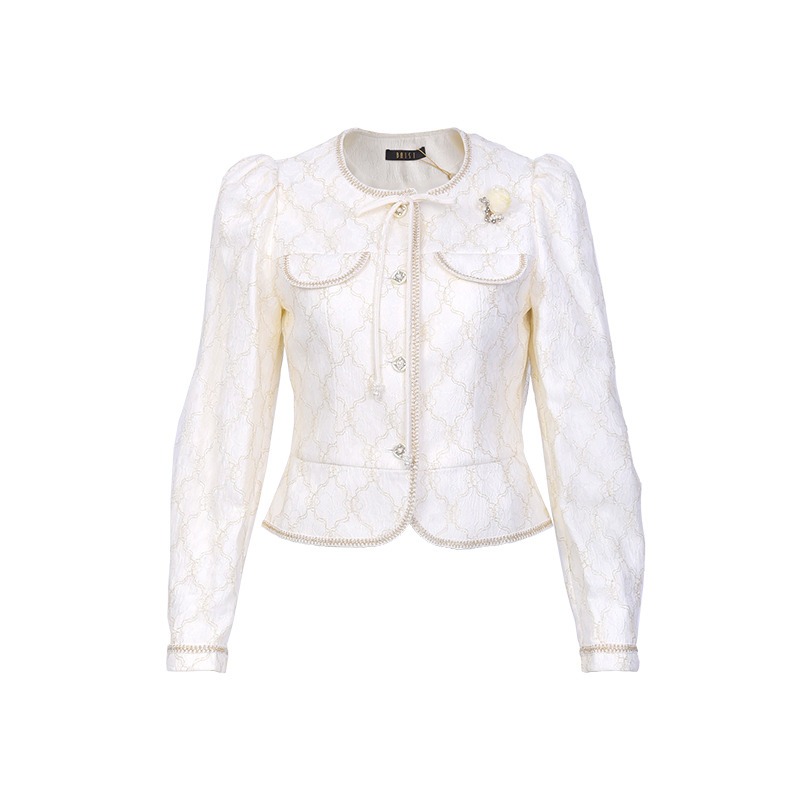初恋风单排扣长袖 新品 外套女 圆领上衣2024冬季 百丝小香风泡泡袖