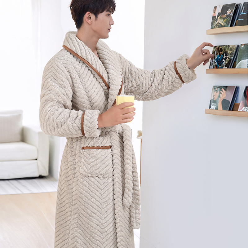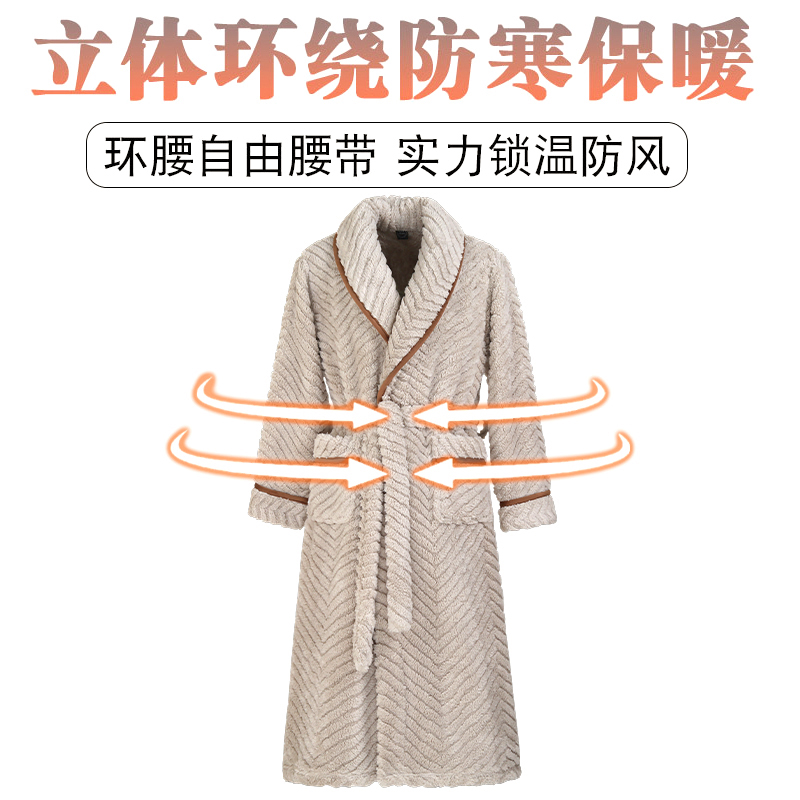 男款 男士 珊瑚绒加厚加绒法兰绒浴袍家居服长款 冬季 睡衣 睡袍秋冬款