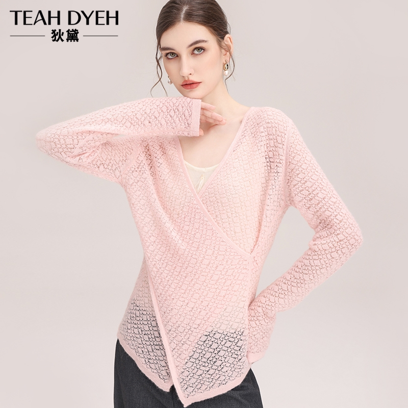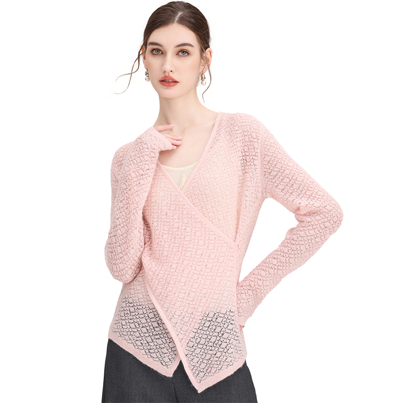 毛衣 羊毛羊驼毛粉色交叉镂空针织衫 一眼就被吸引住 少女感绝了