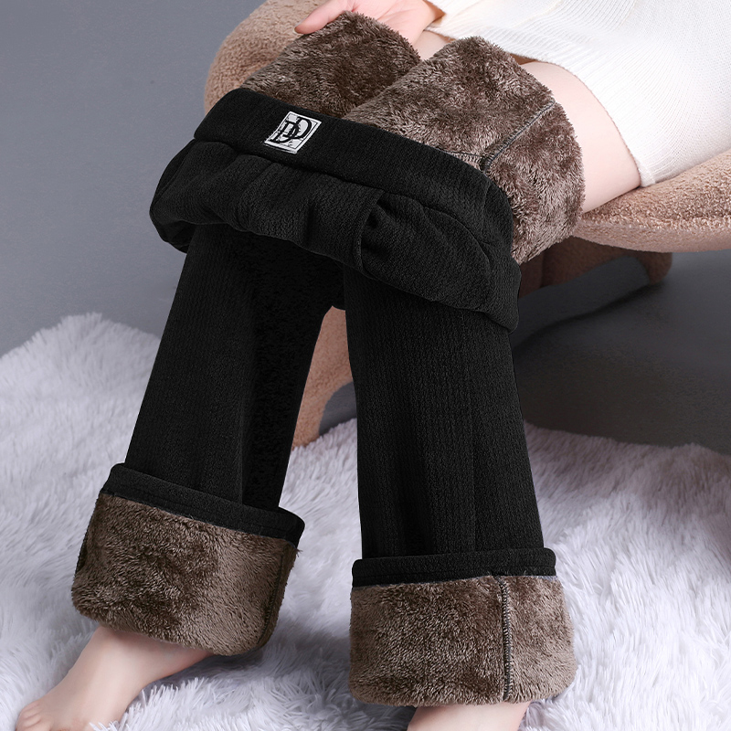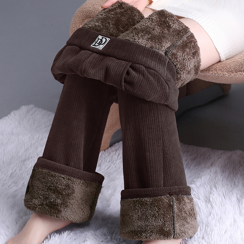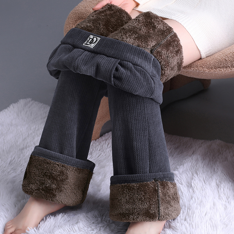 胖mm松紧腰马蹄裤 欧棉绒微喇裤 女裤 加绒加厚高腰显瘦大码 女春秋季