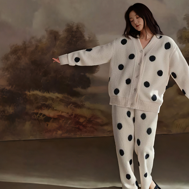 家居服 可外穿软绵绵秋冬天大码 珊瑚绒睡衣女冬季 保暖加绒加厚套装