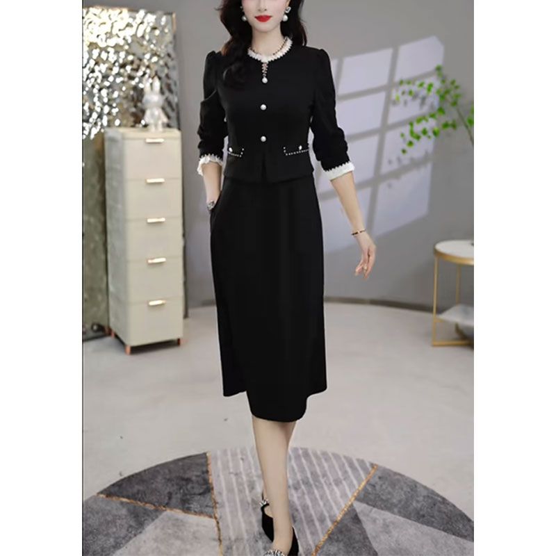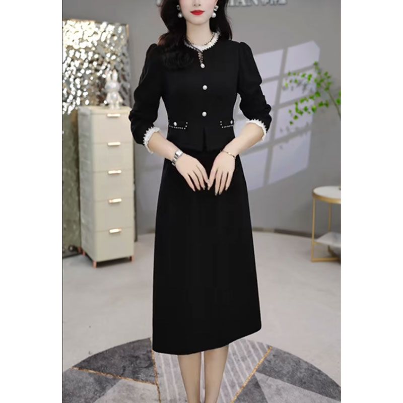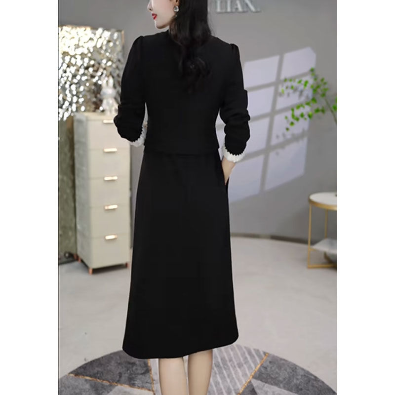 西式 爵莱菲大码 新款 娃娃领黑色小香连衣裙女士2025秋季 法式