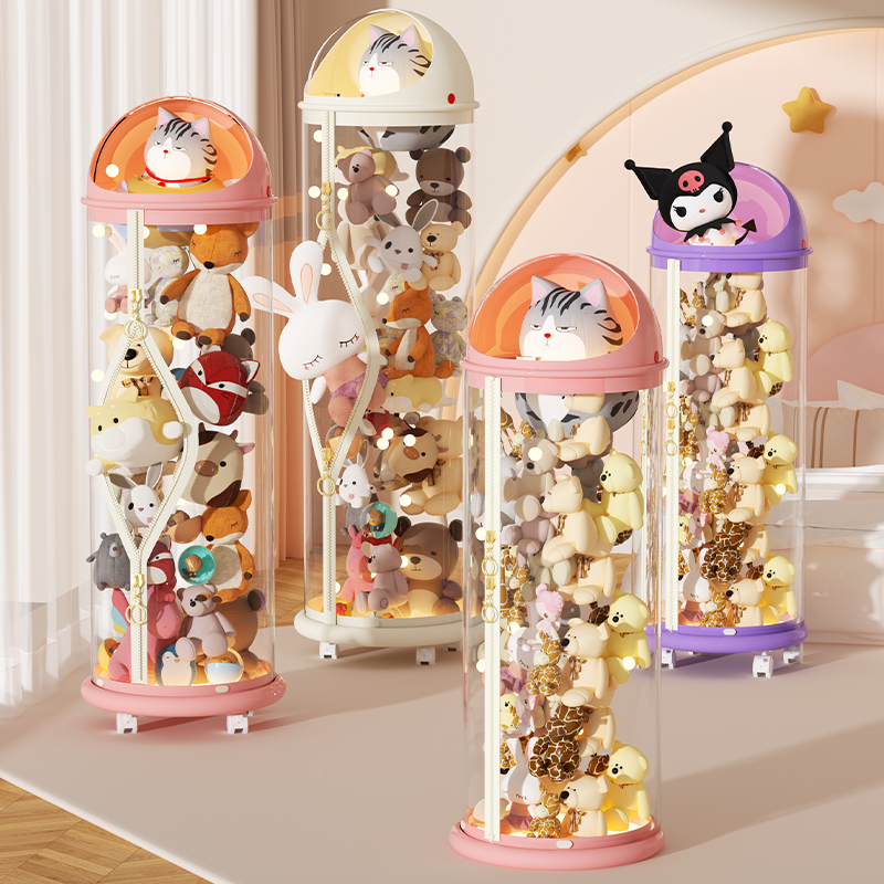 娃娃收纳神器拉链款 毛绒玩偶收纳桶儿童公仔玩具透明大容量整理筒