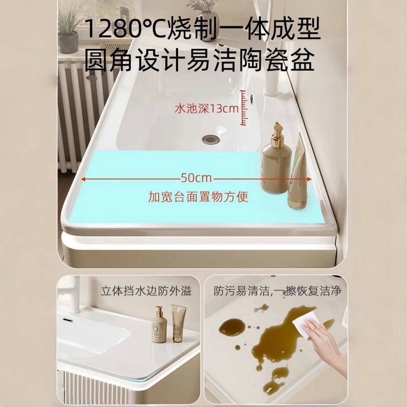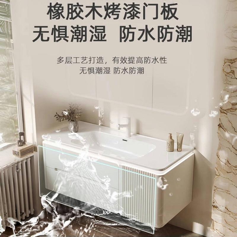 新款 浴室柜陶瓷一体盆卫生间智能洗漱台洗手洗脸盆柜组合加厚实木