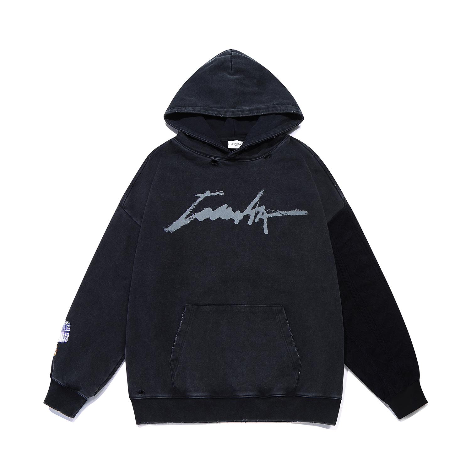 春秋季 卫衣男手绘字母印花连帽新款 外套 撞色格子开衫 查尔斯桃心