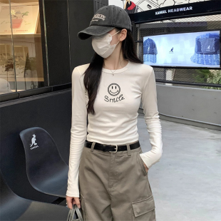 圆领打底衫 修身 春秋内搭印花辣妹纯棉百搭上衣 t恤女2025新款 长袖