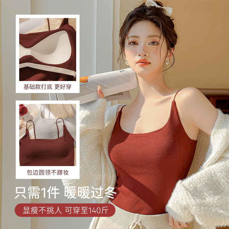 草本初色保暖背心女带胸垫秋衣2025新款 内搭肌底衣 秋冬吊带打底衫