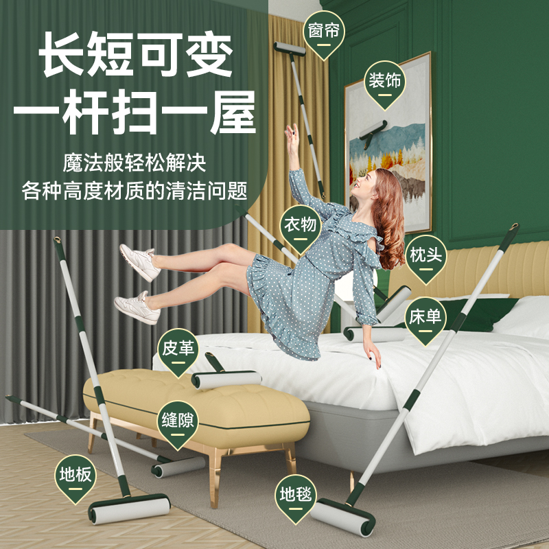 粘毛器滚筒长杆滚刷沾床上猫毛扫地板吸头发神器地毯灰尘清洁床单