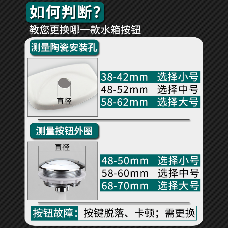 老式 马桶水箱配件单按钮按键坐便器顶部出水开管部件配链条