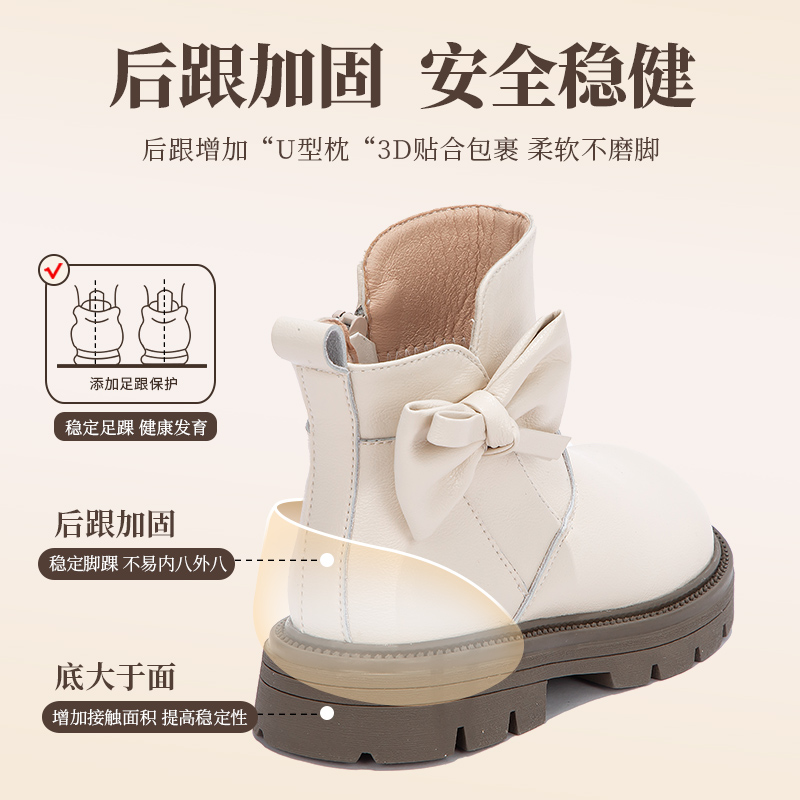 宝宝马丁靴 女孩加绒二棉鞋 女童靴子儿童真皮公主短靴2024新款 冬季