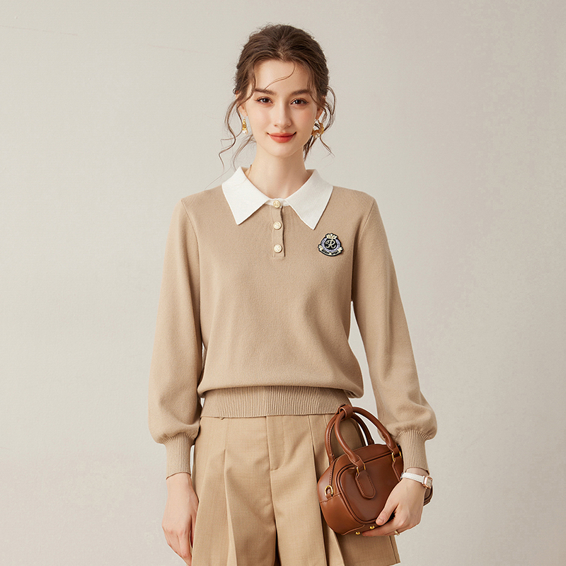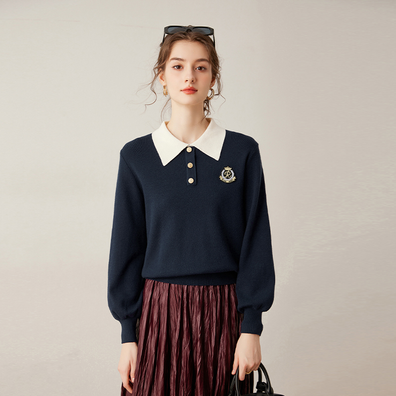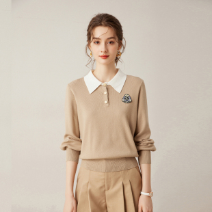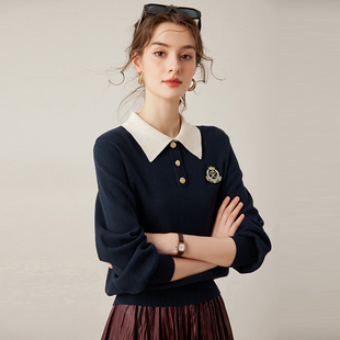 减龄学院风休闲针织衫 白鹿语时尚 冬新款 POLO衫 女 撞色翻领长袖