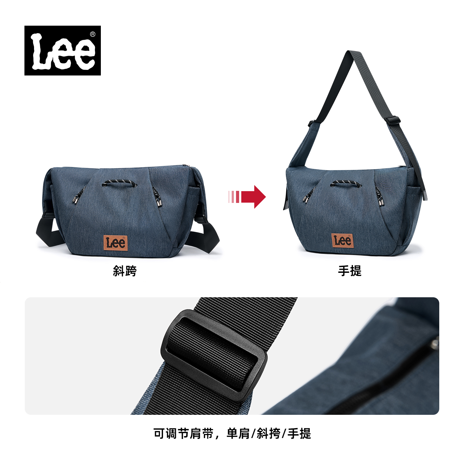 Lee春夏季 百搭斜挎包大学生上课通勤牛仔包 大容量单肩包女时尚