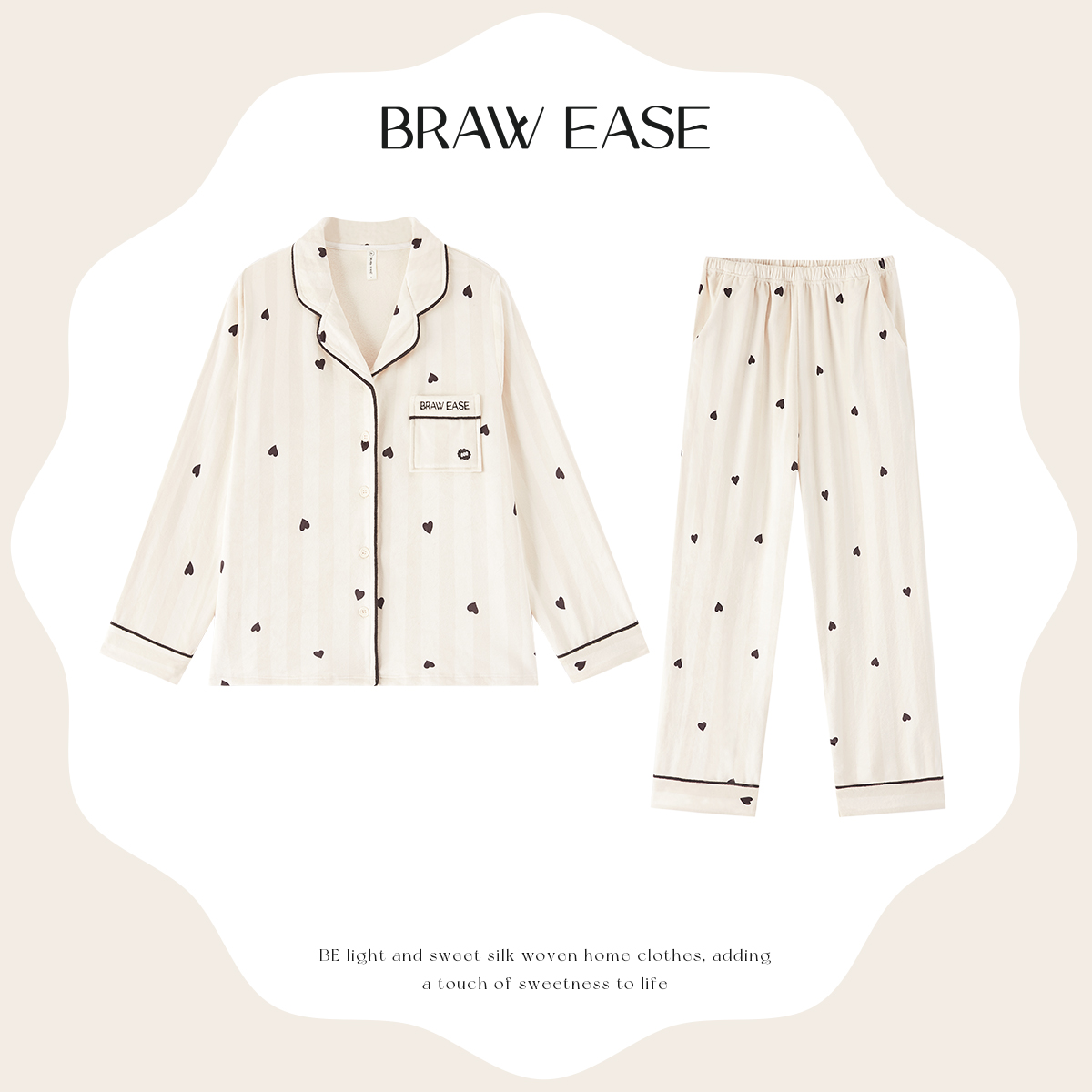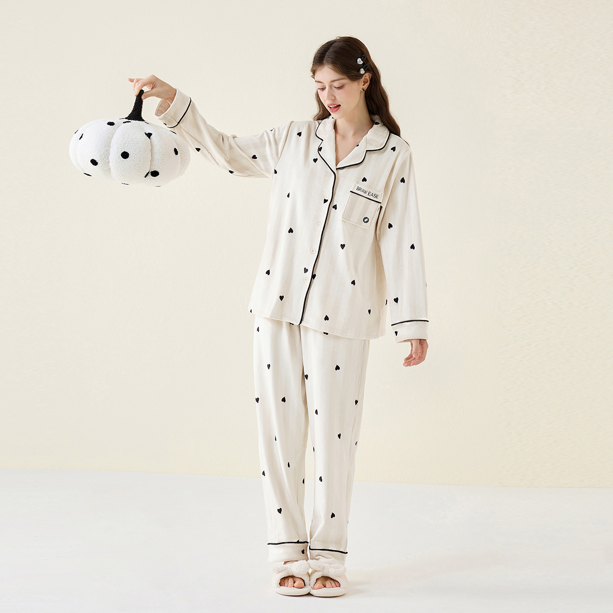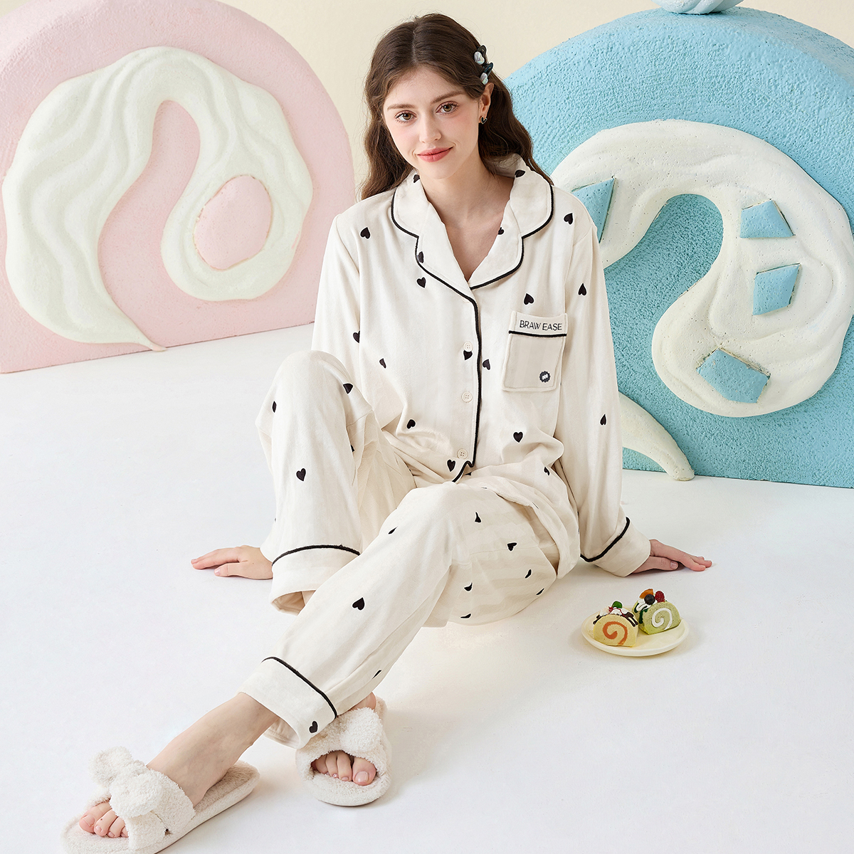 长袖 简约舒适家居服套装 长裤 夏季 可外穿 2025新款 纯棉睡衣女春秋季