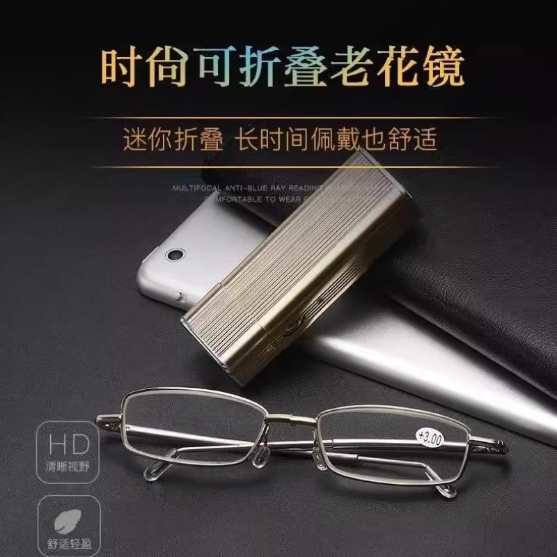 德国防蓝光老花镜男折叠便携式 远近两用高清智能老人眼镜调节小巧