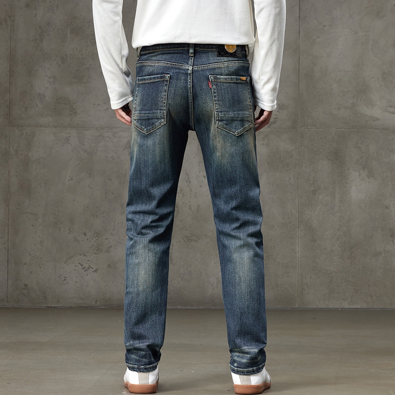 小直筒裤 秋冬潮牌美式 修身 高级感水洗高端面料牛仔长裤 男 复古时尚