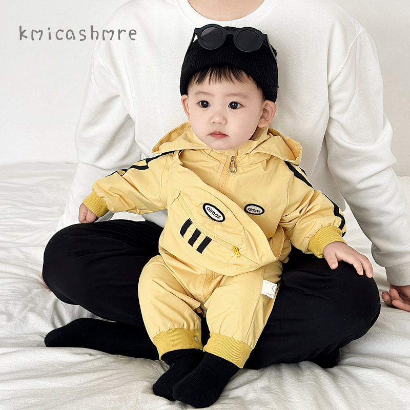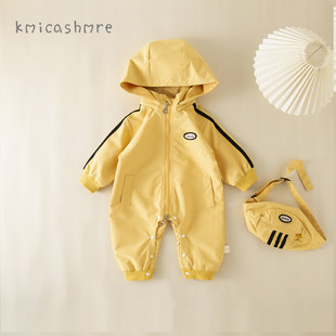 外出挎包双层秋天外套爬服 男宝连体衣春秋款 kmi婴儿秋装 衣服秋季