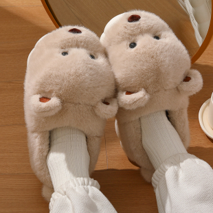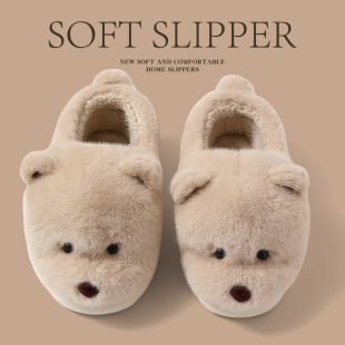 室内家居包跟毛绒保暖厚底情侣棉鞋 2024新款 女士冬季 踩屎感棉拖鞋