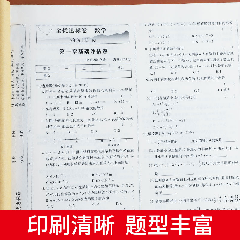 七年级上册下册试卷测试卷全套数学人教版 上A 初一7下学期数学课本教材同步练习册应用题计算题专项训练天天练初中必刷题北师大版