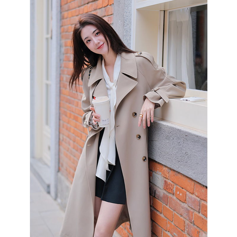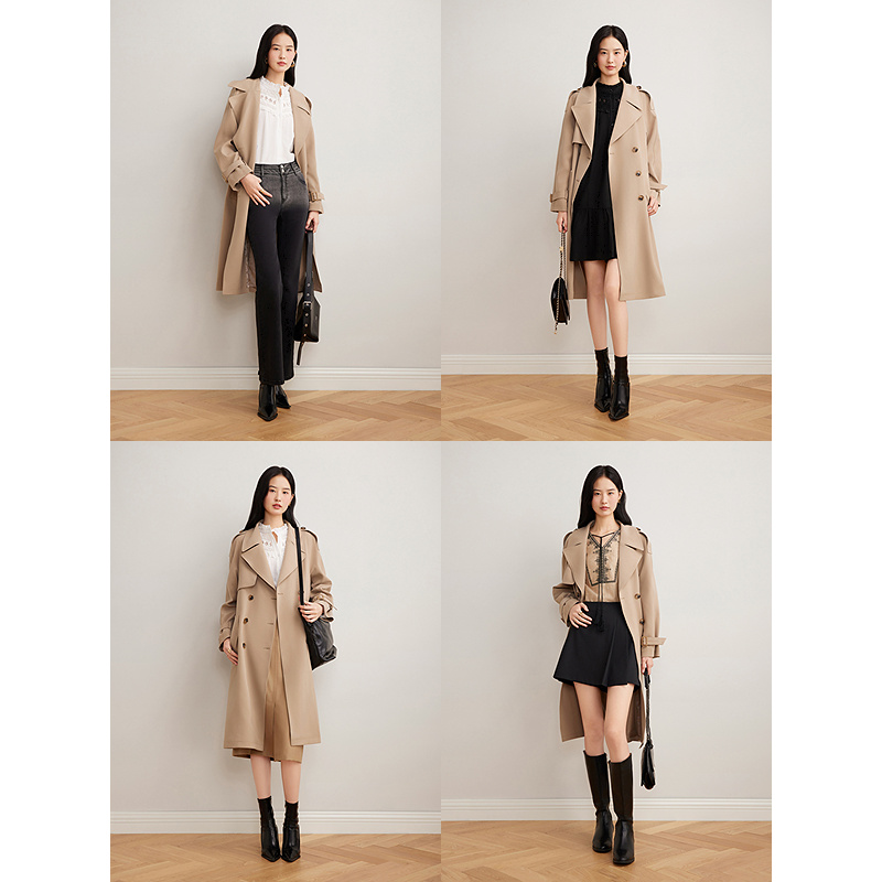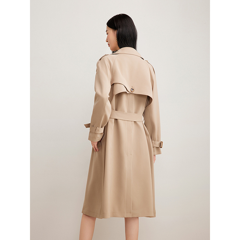 LC35107020 驼色双排扣风衣外套长款 Goodland美地女装 经典