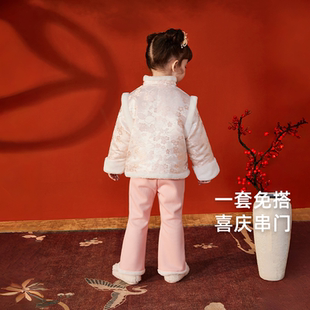 儿童汉服套装 新年装 小童秋冬夹棉加绒两件套宝宝冬款 女童国风唐装