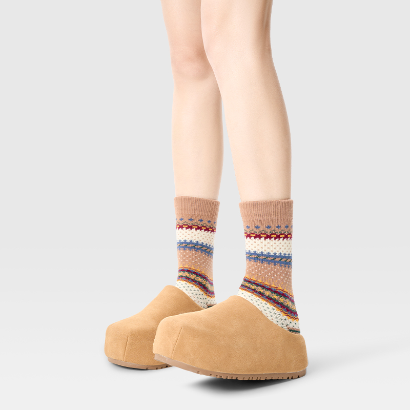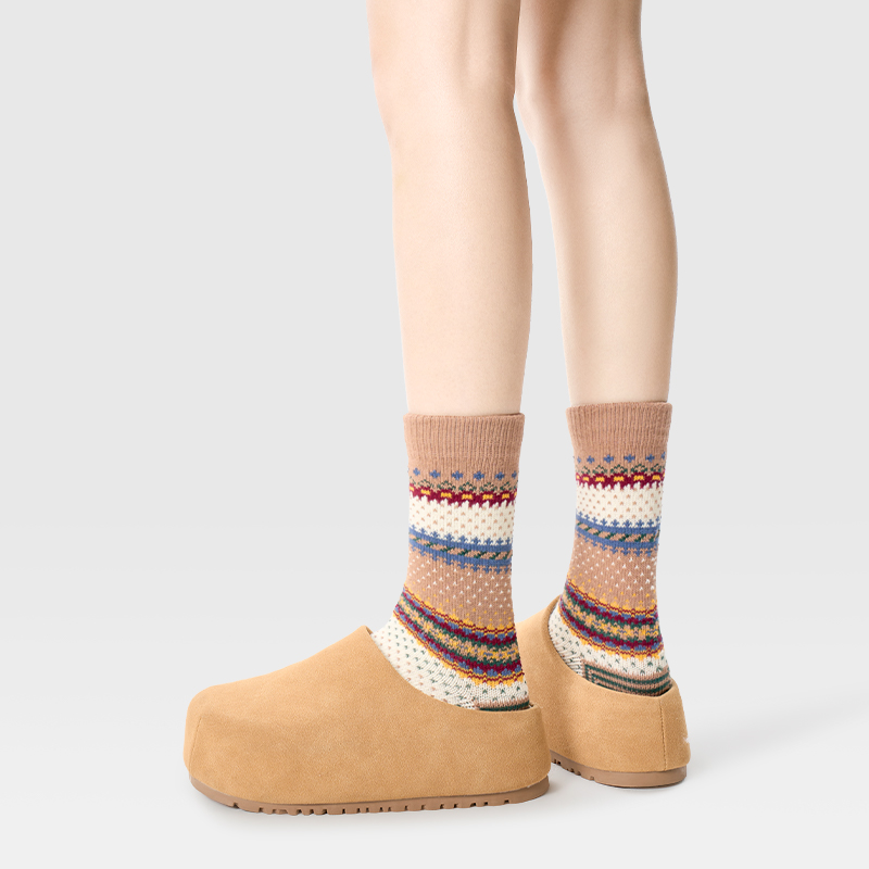 棕咖色月子长袜 乐福鞋 木耳边堆堆袜子女秋冬季 纯棉中筒袜配小皮鞋