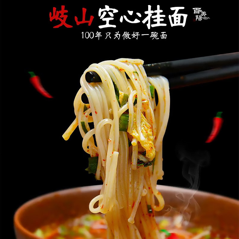 百年美阳陕西特产岐山手工空心挂面宝鸡臊子面加盐细面条200克 袋