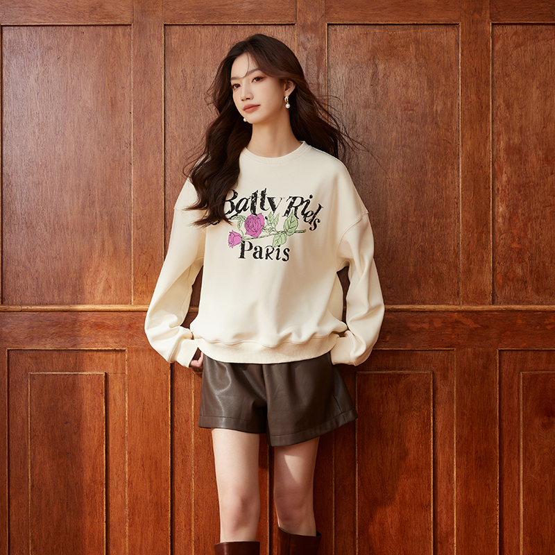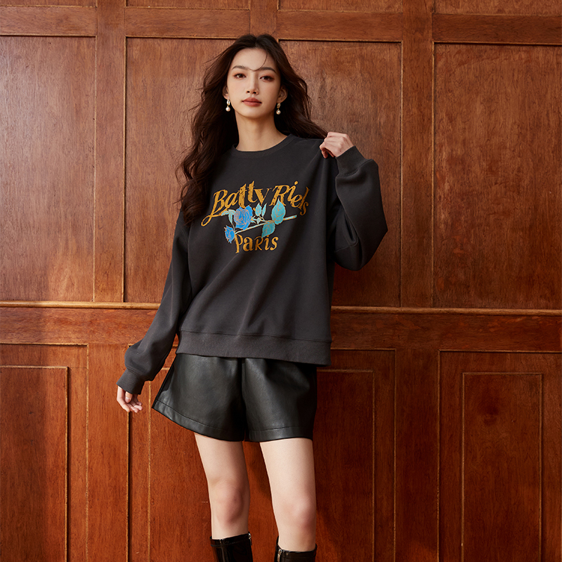 上衣2024新款 重磅圆领套头卫衣女纯色长袖 明星同款 至漫ZHIMAN