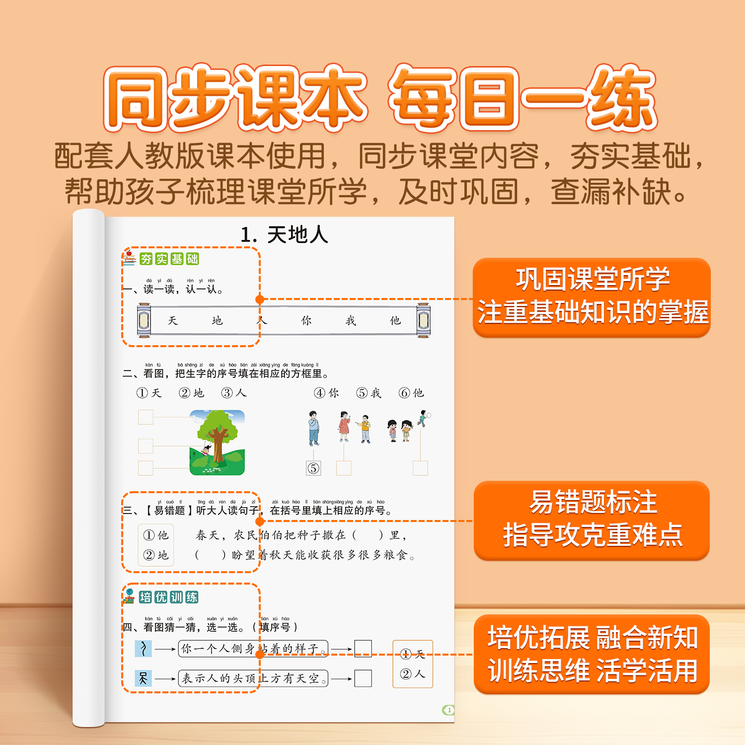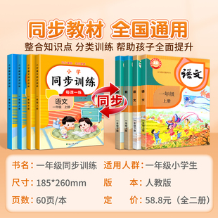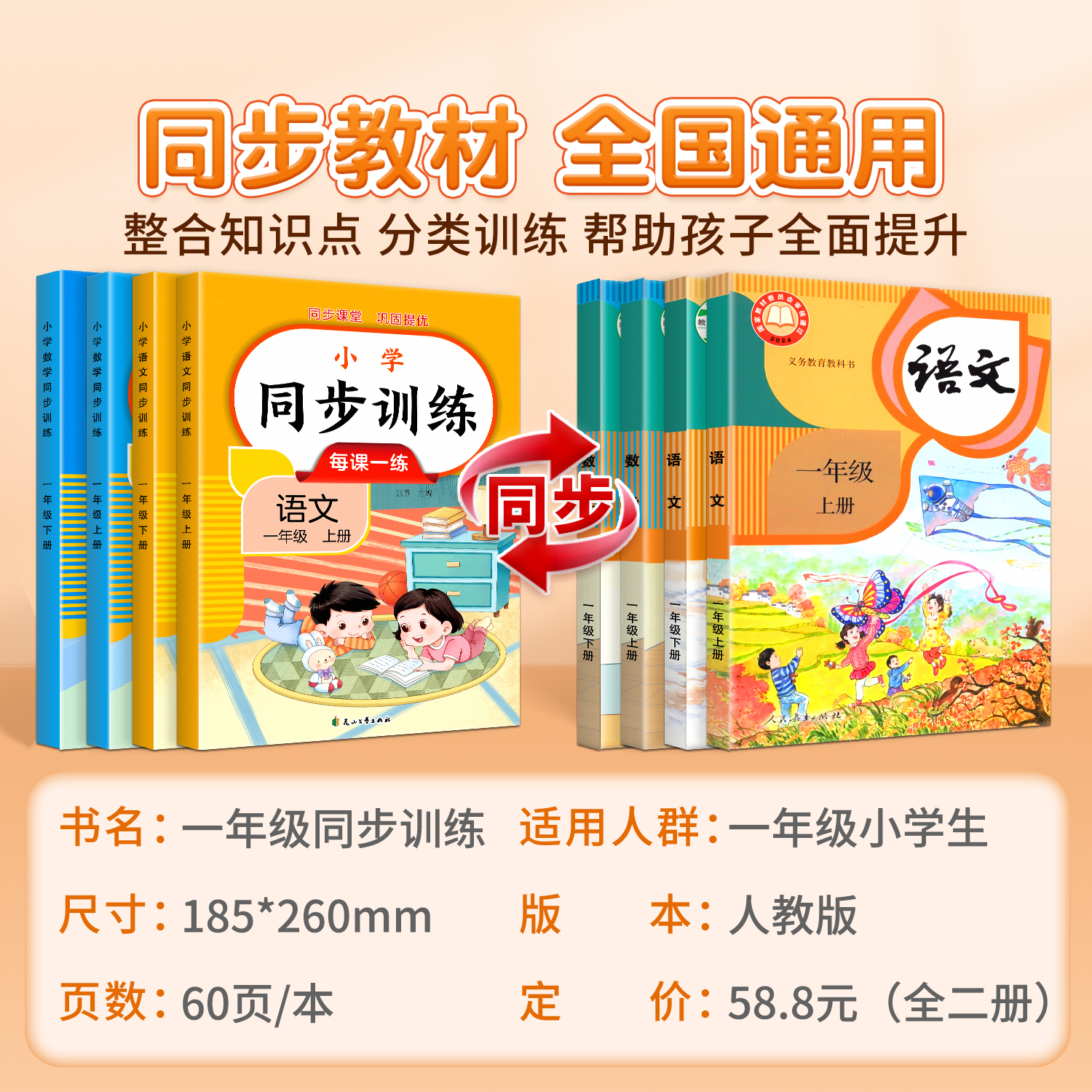 语数同步训练一二三四年级上册下册语文数学人教版 课本同步练习册一课一练语数全套练习题册作业本随堂测试卷教材同步小学生专项