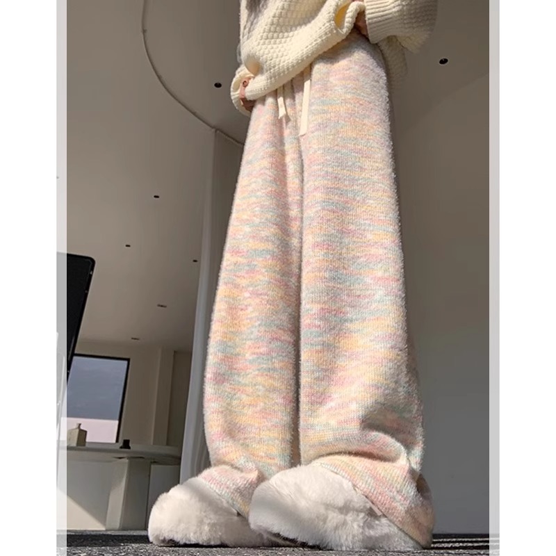 加绒街舞穿搭褶皱宽松休闲长裤 女秋冬季 子 灰色运动卫裤 自然涩美式