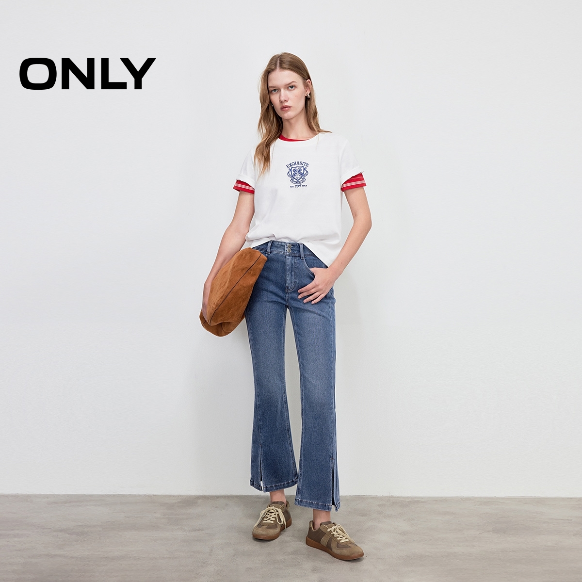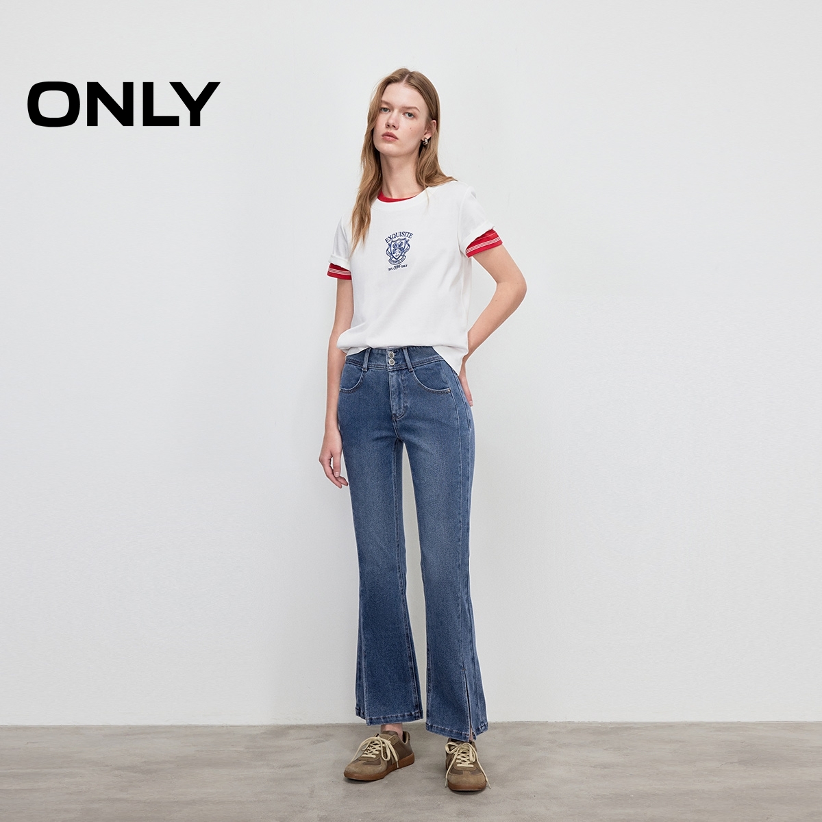 牛仔裤 ONLY奥莱2025秋季 九分裤 复古通勤高腰喇叭裤 女 新款