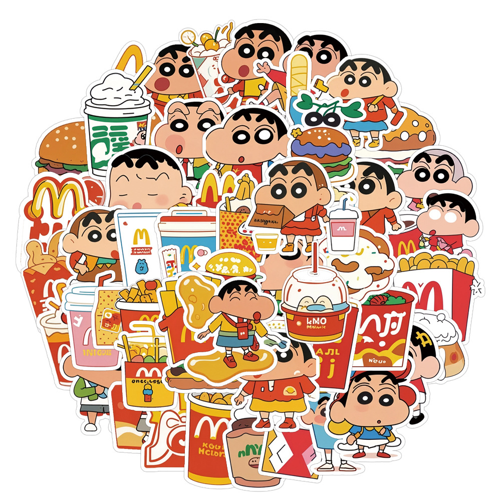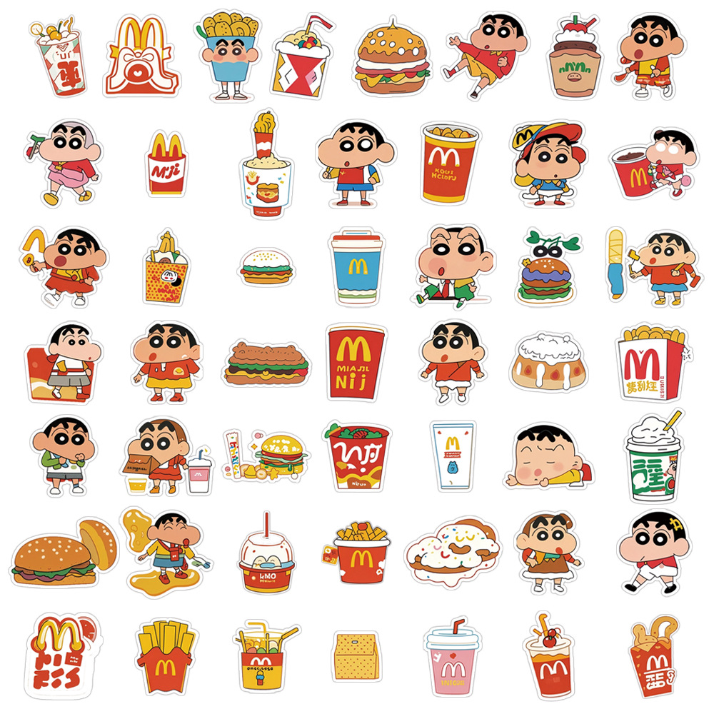 50张蜡笔小新麦当劳贴纸卡通M记可爱趣味贴画个性 饰防水贴纸 创意封口贴笔记本电脑行李箱水杯滑雪板文具装