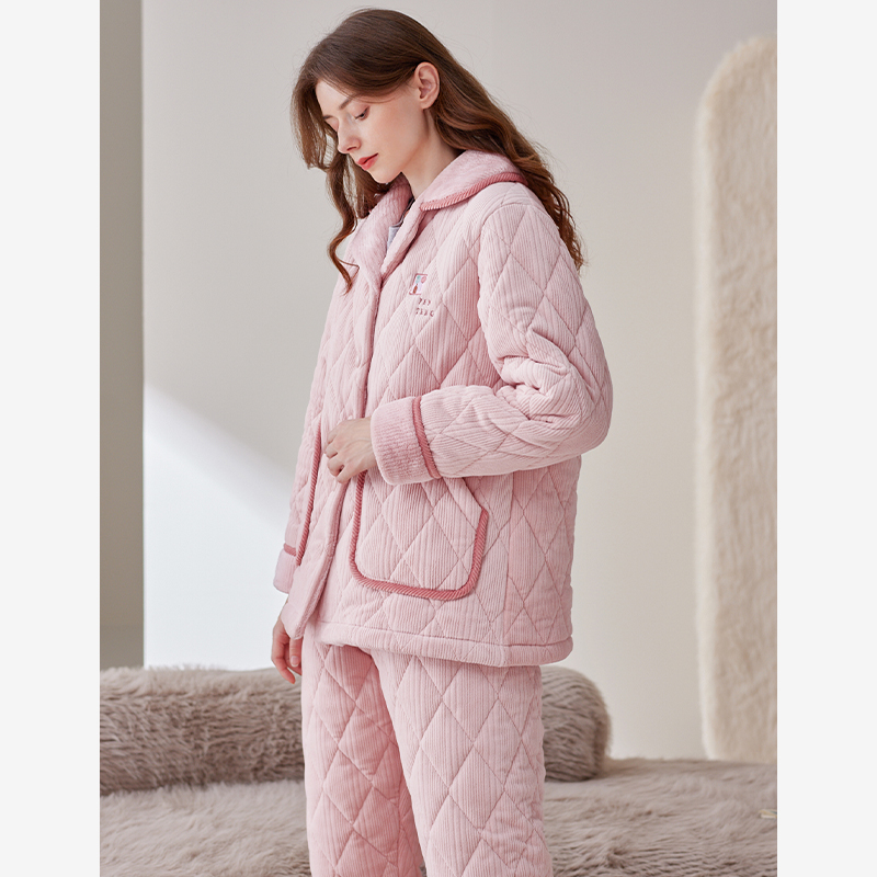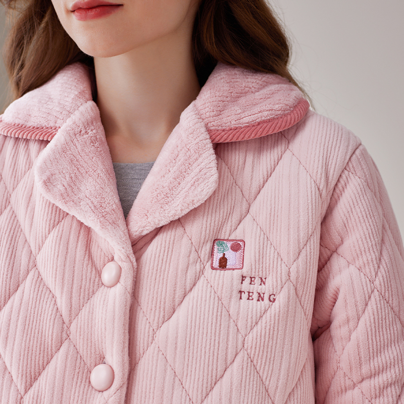 提花拉链刺绣小熊家居服外套装 珊瑚绒睡衣女冬季 保暖 双层加厚