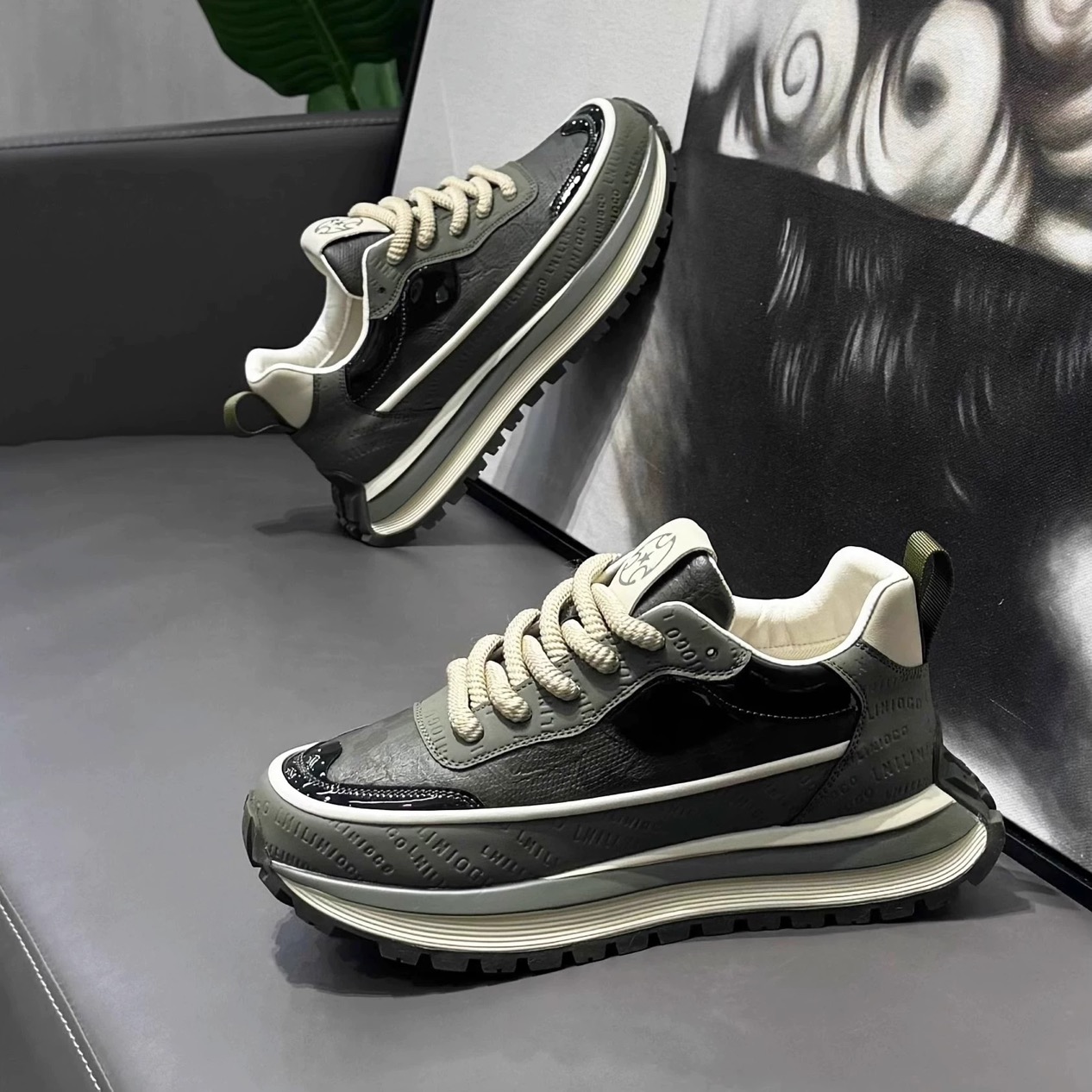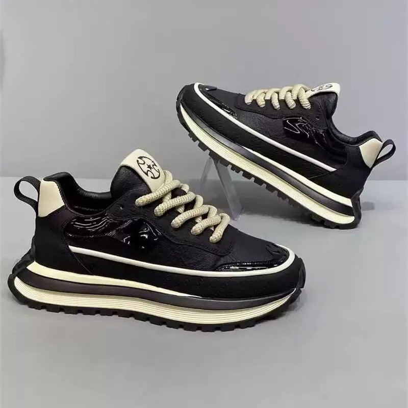 百搭休闲真皮阿甘跑步运动厚底增高黑色老爹潮鞋 秋季 男鞋 网红爆款