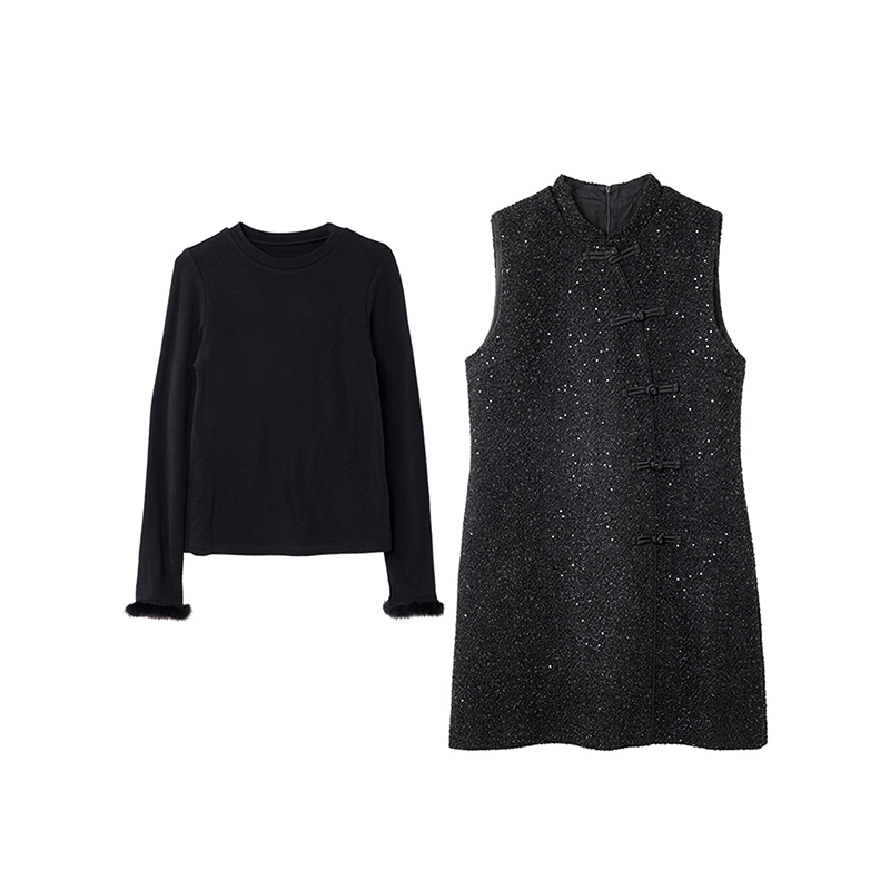 气质针织裙子短裙 黑色连衣裙女下摆开叉时尚 DPLAY2025年秋季 新款