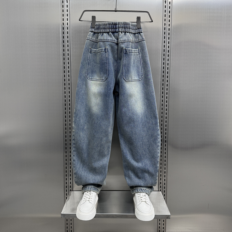 老爹裤 高腰直筒宽松大码 子加绒 女2025年春秋新款 松紧腰哈伦牛仔裤