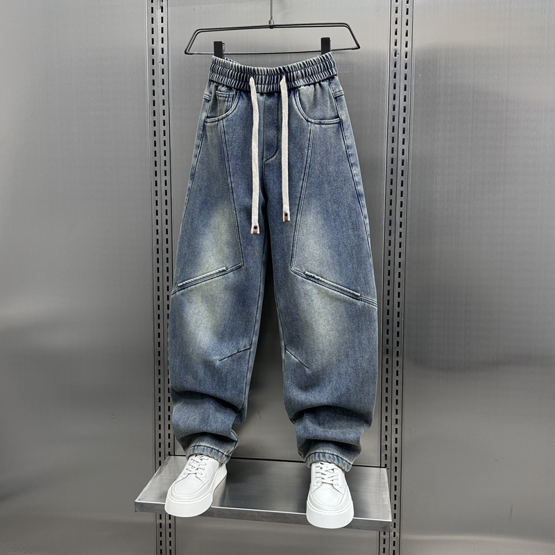 设计感铆钉水洗宽松直筒裤 V37美式 秋季 男款 子 解构立体褶皱牛仔裤